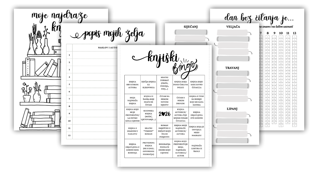 - stranice za praćenje “hrpice” knjiga pročitanih u svakom mjesecu u godini